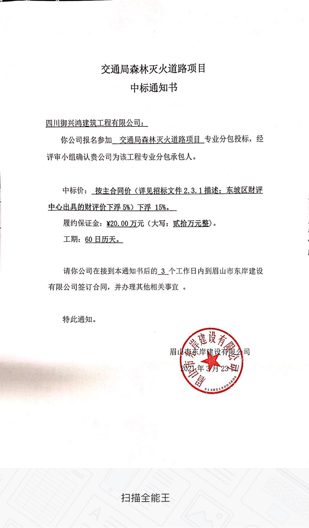 交通局森林滅火道路項目專業(yè)分包中標公示